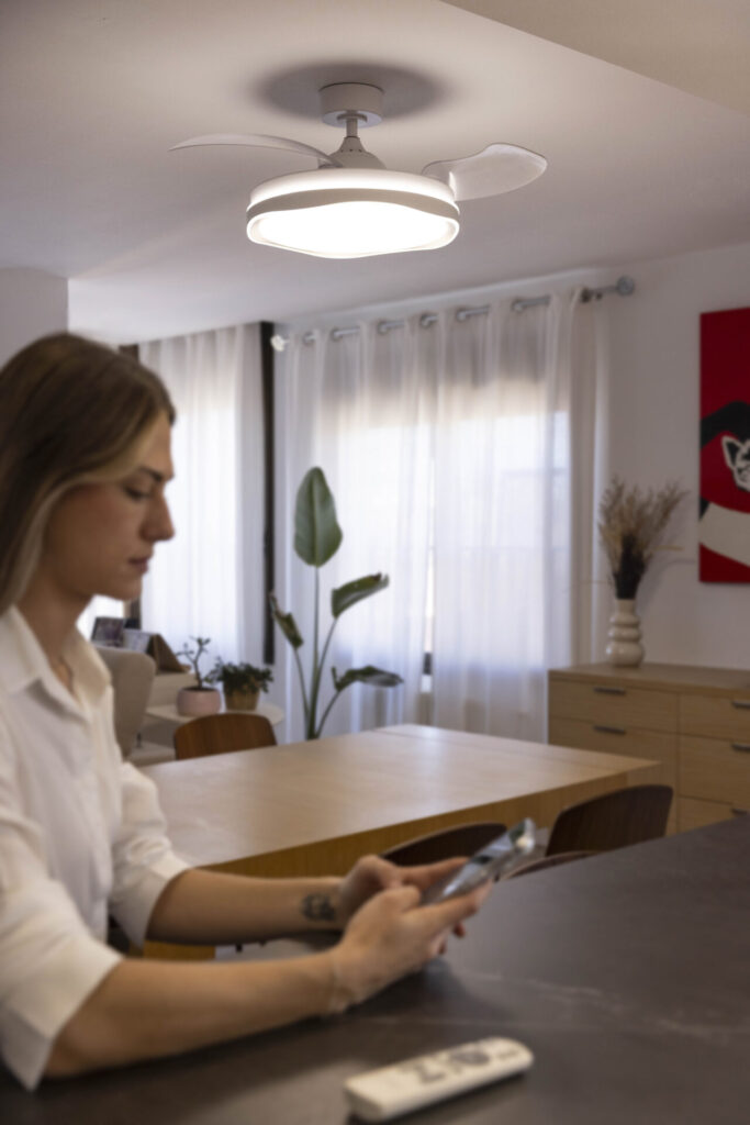 Haz que tu ventilador no solo proporcione aire fresco, sino que forme parte de la decoración de tu hogar, con acabados perfectos, luces led, sistema de aspas retráctiles o luces RGB.