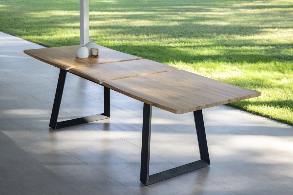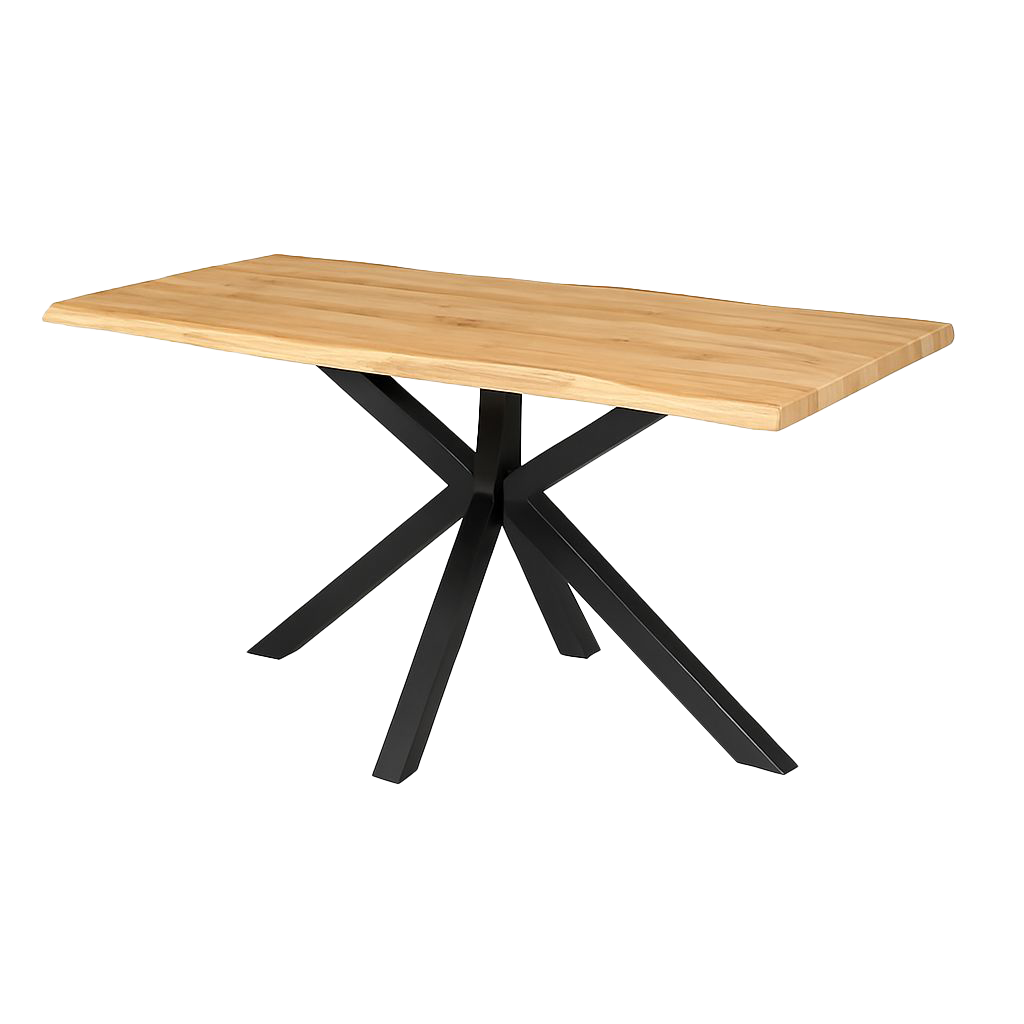 La tabla, con un realista efecto madera de tronco natural, aporta textura, calidez y una sensación visual muy cercana a la madera maciza, convirtiéndose en un elemento protagonista dentro de cualquier ambiente. Su diseño sobrio se equilibra con unas patas metálicas cruzadas en color grafito que no solo refuerzan la estructura, sino que añaden un toque industrial moderno y muy actual. Esta combinación de materiales y formas convierte a la mesa NORDIC en una pieza funcional y decorativa que encaja tanto en hogares de estilo escandinavo como en interiores más rústicos o contemporáneos.