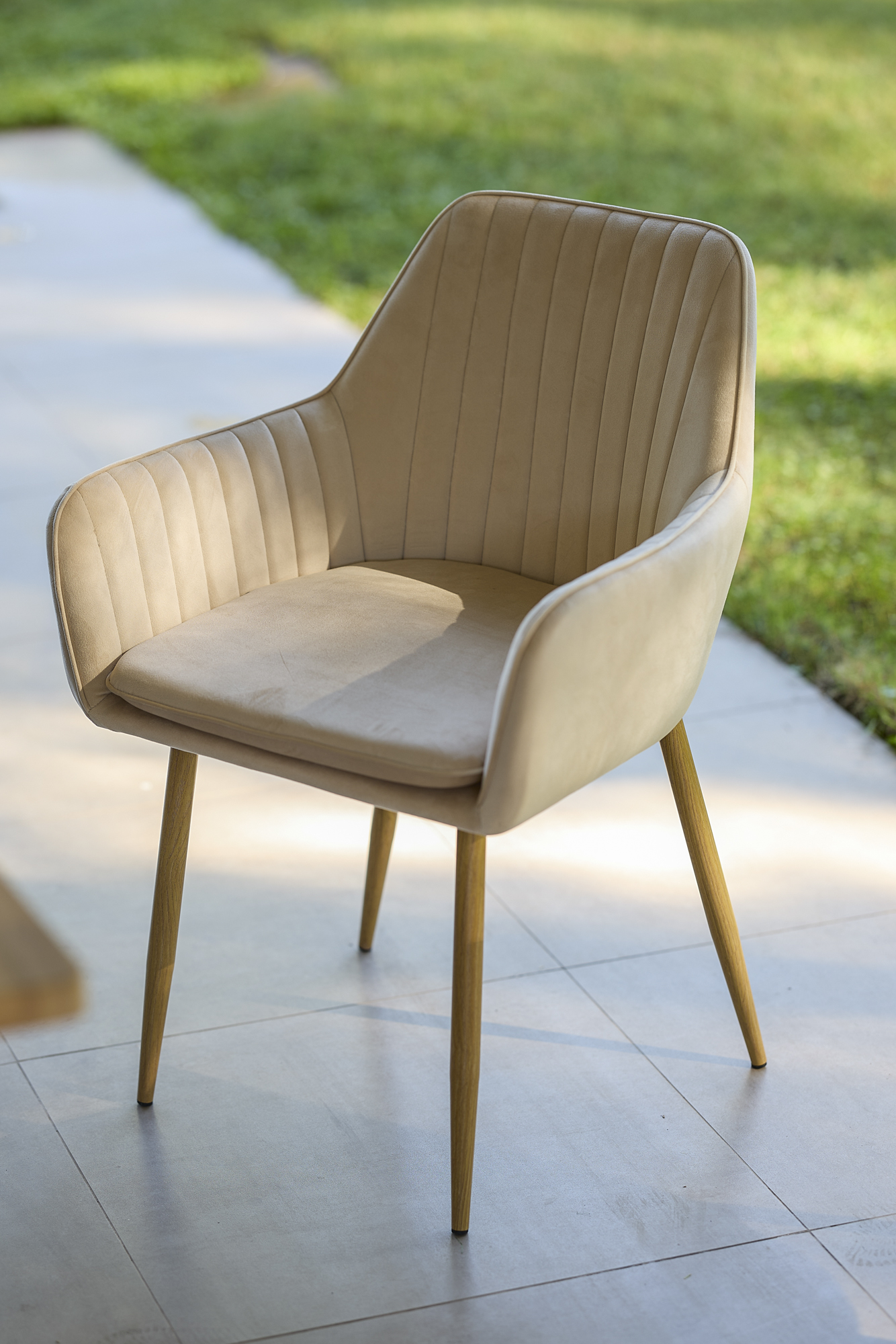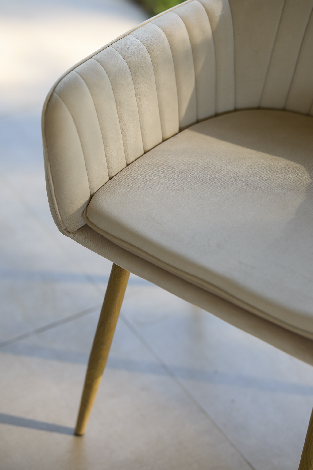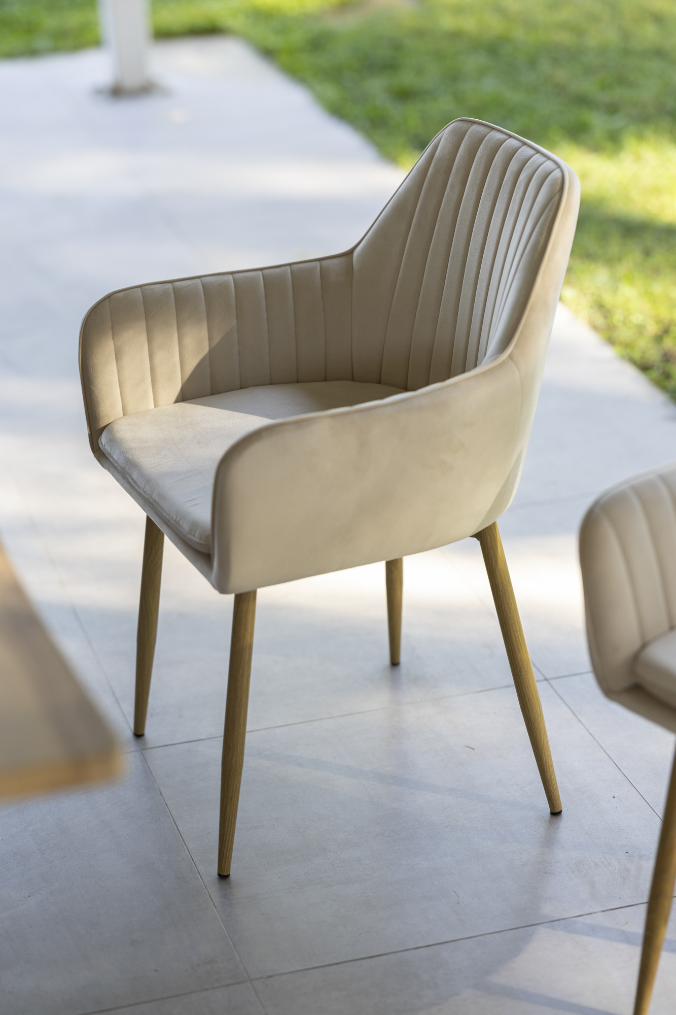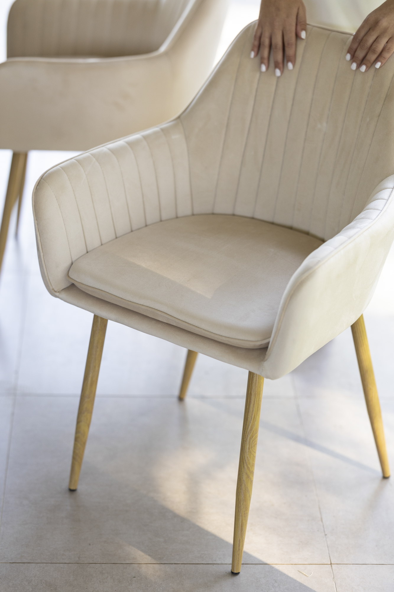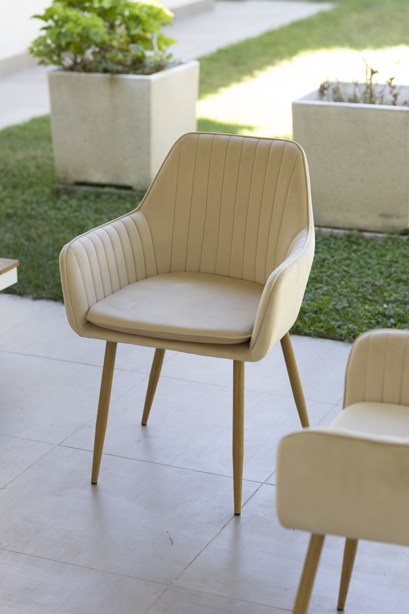Dale a tu hogar un toque cálido y moderno con este conjunto de sillones modelo JÁVEA en color beige, que combina a la perfección diseño escandinavo, calidad premium y funcionalidad. Tapizado en suave terciopelo beige, su textura aporta calidez y elegancia a cualquier espacio, mientras que sus patas metálicas con acabado efecto madera le dan un aire natural sin renunciar a la resistencia.