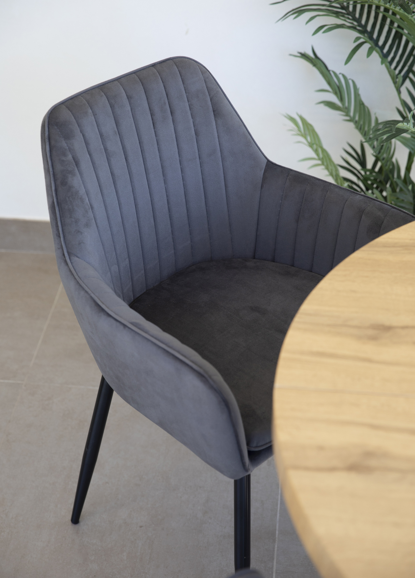 Dale a tu hogar un toque cálido y moderno con este conjunto de sillones modelo JÁVEA en color gris, que combina a la perfección diseño escandinavo, calidad premium y funcionalidad. Tapizado en suave terciopelo gris, su textura aporta calidez y elegancia a cualquier espacio, mientras que sus patas metálicas con acabado efecto madera le dan un aire natural sin renunciar a la resistencia.