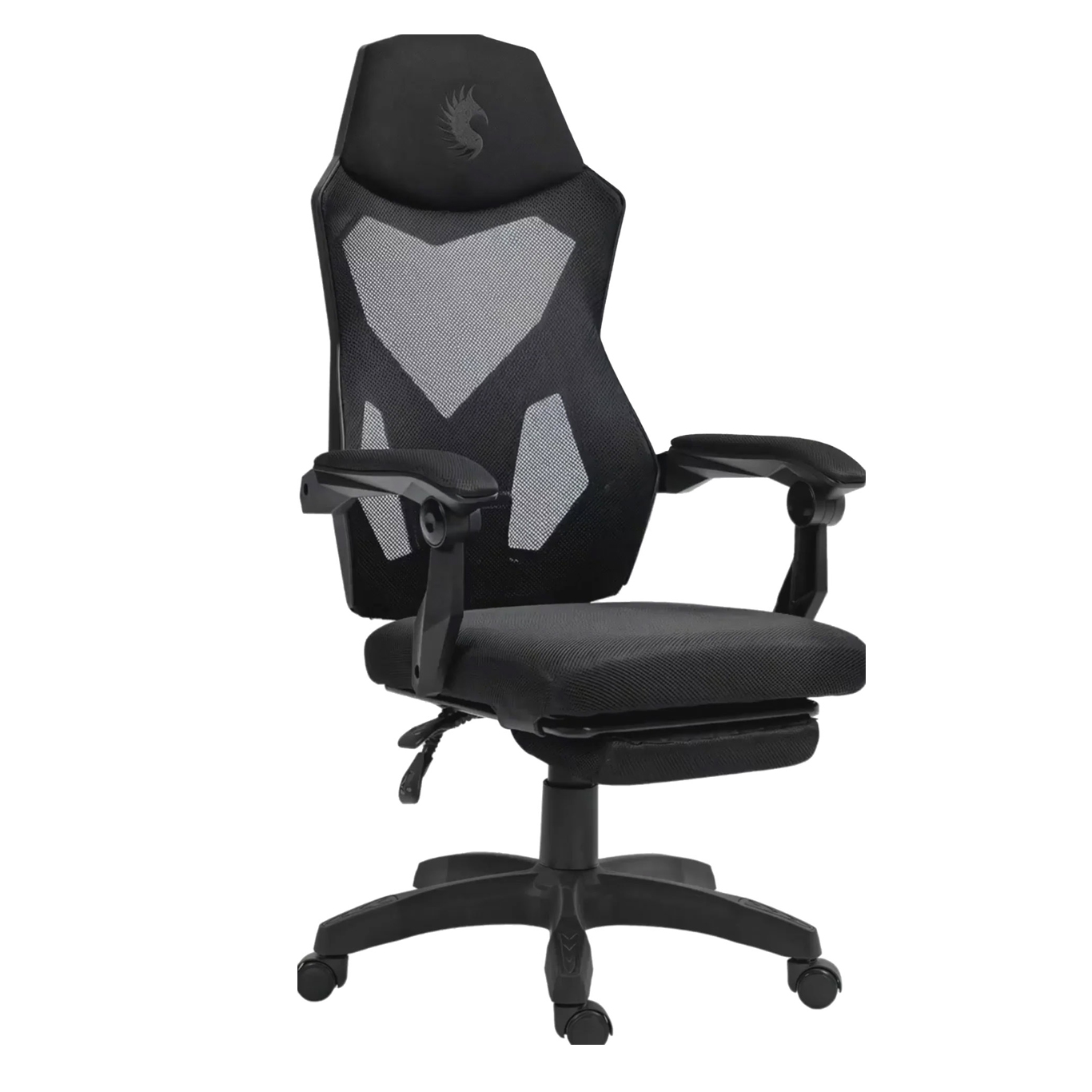 Cuenta con respaldo reclinable hasta 135° y un reposapiés retráctil, para que puedas relajarte y encontrar la posición perfecta en cada momento. La altura regulable mediante elevador de gas premium permite un ajuste suave y seguro, adaptándose a tu escritorio o a tu forma de sentarte.