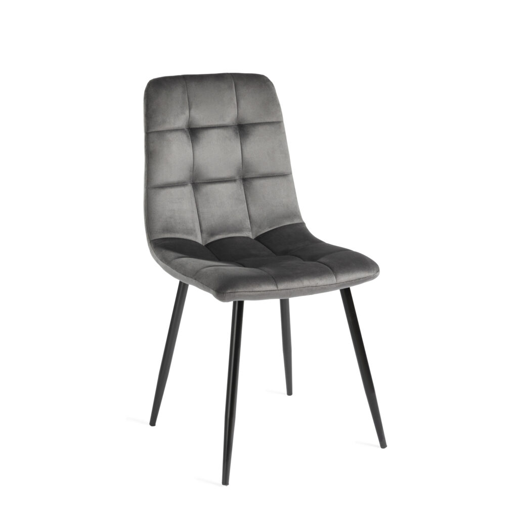 La silla de comedor ALTEA está tapizada en tela resistente al desgaste en color gris, con patas de metal robustas que garantizan estabilidad y durabilidad.