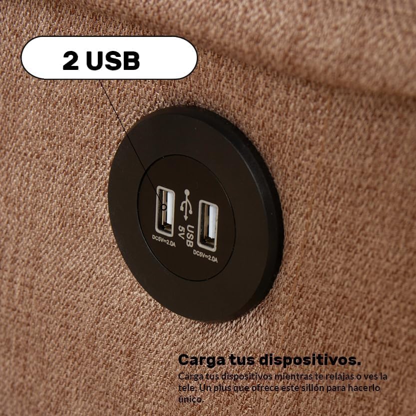 - – Incluye 2 puertos USB para que cargues tu móvil o tablet mientras te relajas