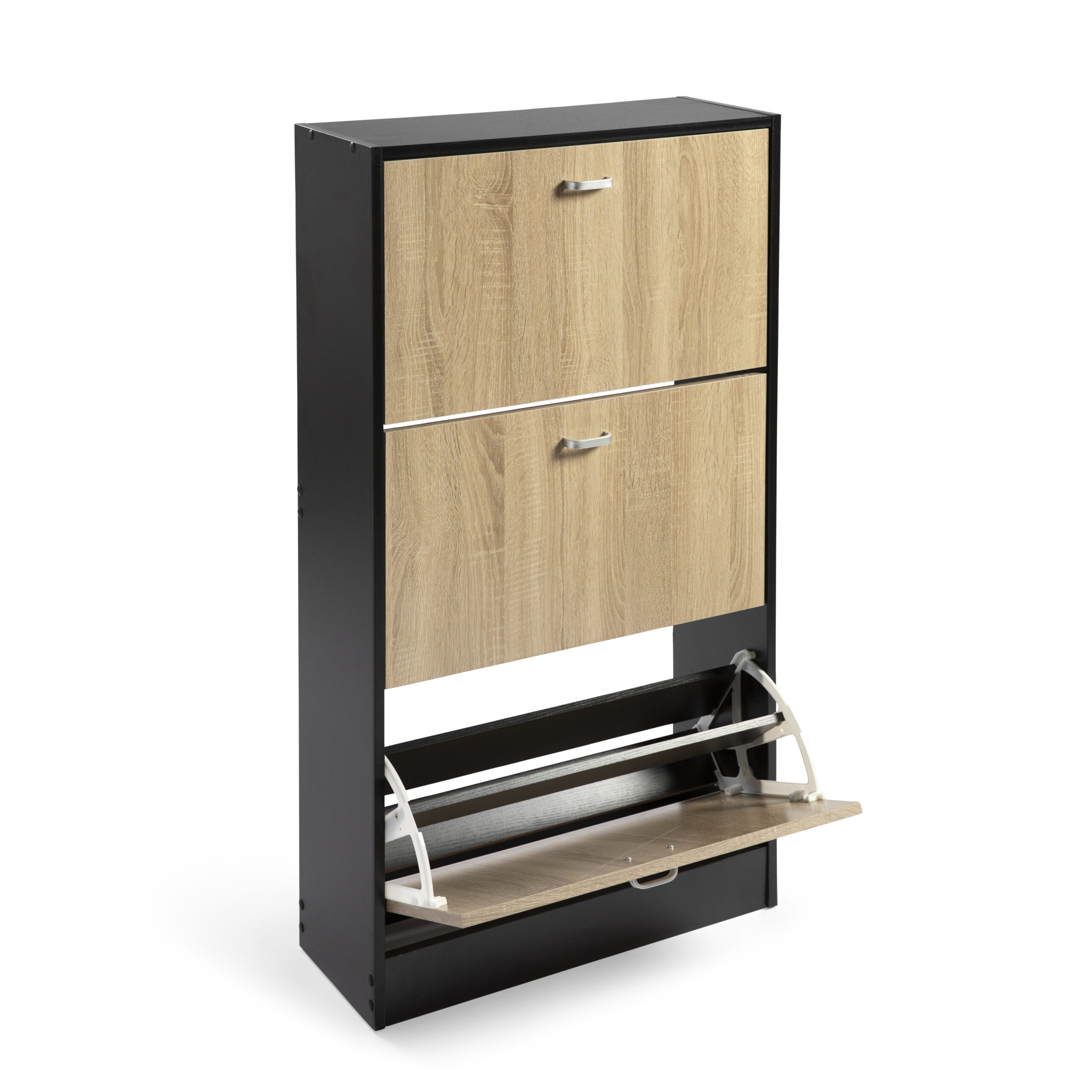 Fabricado en madera aglomerada de alta calidad, y con varios colores disponibles, este zapatero ofrece un equilibrio perfecto entre diseño moderno, resistencia y facilidad de mantenimiento. Las 3 puertas oscilobatientes ocultan un total de seis baldas interiores, permitiendo almacenar cómodamente hasta 28 pares de zapatos. Cada compartimento está pensado para facilitar el acceso y optimizar el espacio, ayudándote a mantener el calzado protegido del polvo y perfectamente ordenado.